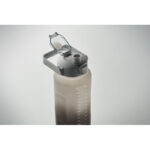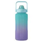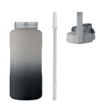 Motivational water bottle in RPET. Features a one-hand open flip-top lid with straw, safety lock, and handle. Leak-free. Capacity : 2000 ml