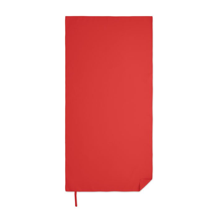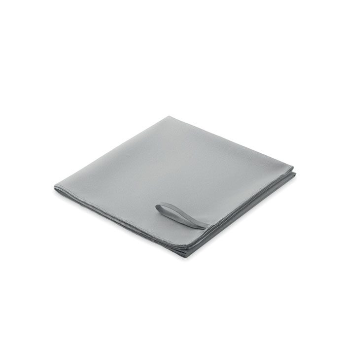 Microfibre towel made of 90% polyester and 10% polyamide with elastic handle. Lightweight and quick drying. Size 50 cm x 100 cm.