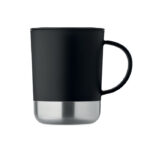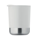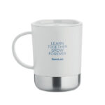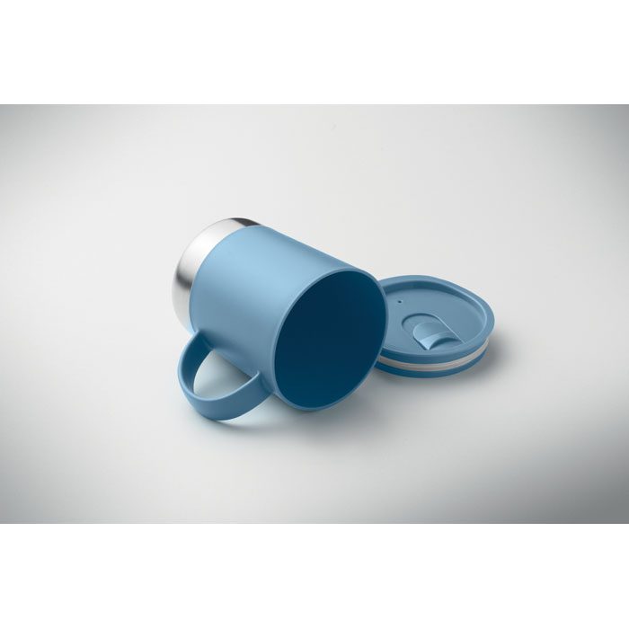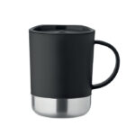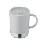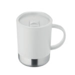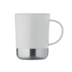 PP mug with recycled stainless steel base (90 % recycled stainless steel and 10% stainless steel) and PP sliding lid. Capacity: 300 ml.
