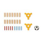 Wooden soccer game. Includes players, ball, shooter and scoring sticks.