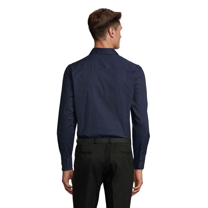 SOL’S BRIGHTON; LONG SLEEVE STRETCH MEN’S SHIRT; 97% cotton – 3% elastane POPLIN STRETCH 140; Fitted cut; Long sleeves; Single button collar; Cuffs with 2 buttons and bound slit; 7 tone-on-tone button placket.About sizes matching, please refer to the size chart in the product documentation section.
