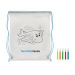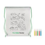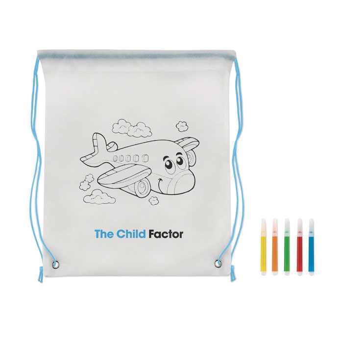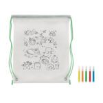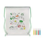 Non woven drawstring bag with 5 markers and design to colour in. 80 gr/m². Standard imprint.