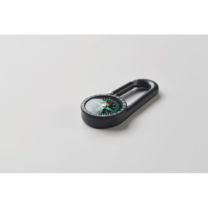 ABS outdoor compass with carabiner. The carabiner is not for climbing (non-professional use).