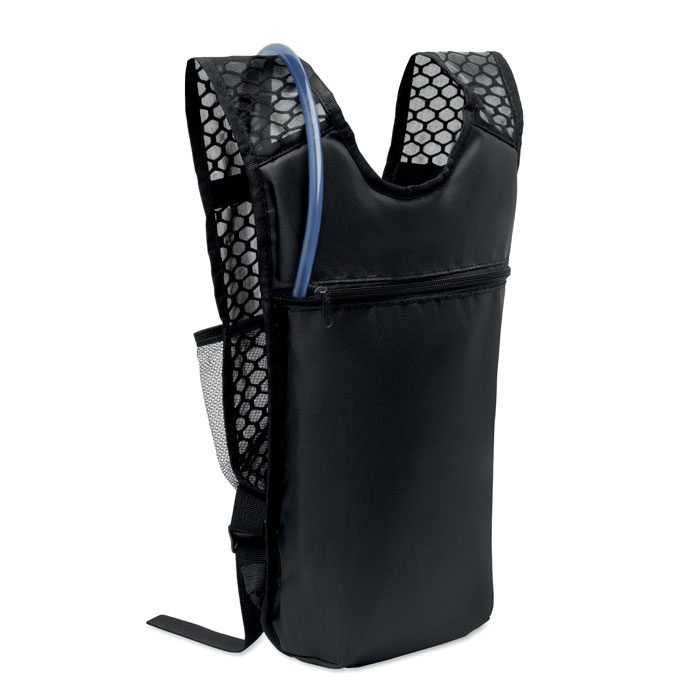 Sports backpack made of water-repellent 420D PU/nylon with mesh details. Includes a 1500ml EVA water container with PVC tube and lock. Lightweight, durable, and perfect for outdoor activities.