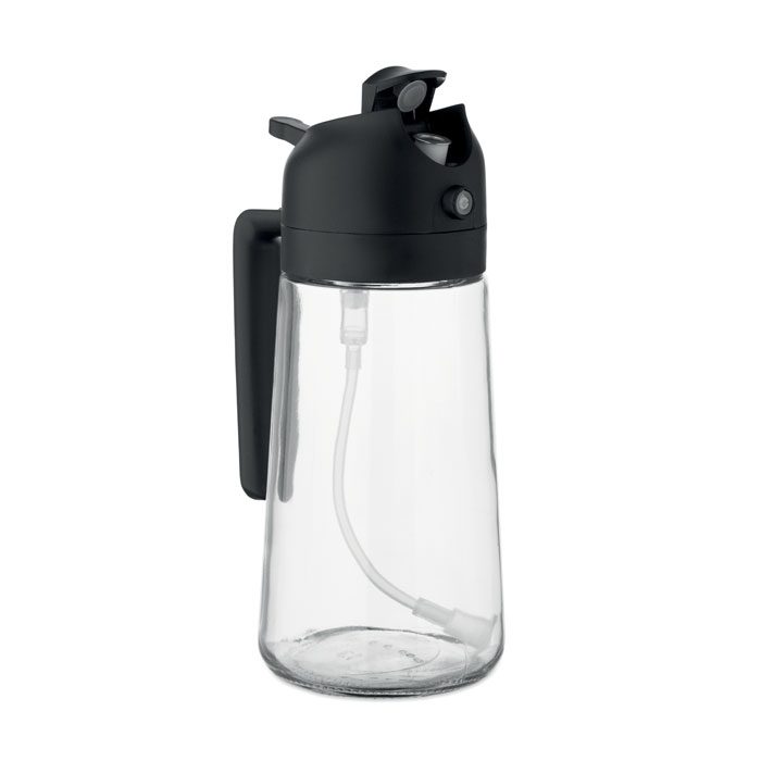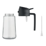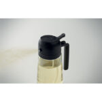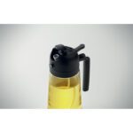 2-in-1 glass oil dispenser and sprayer with PP lid and PE straw. Capacity 450 ml.