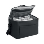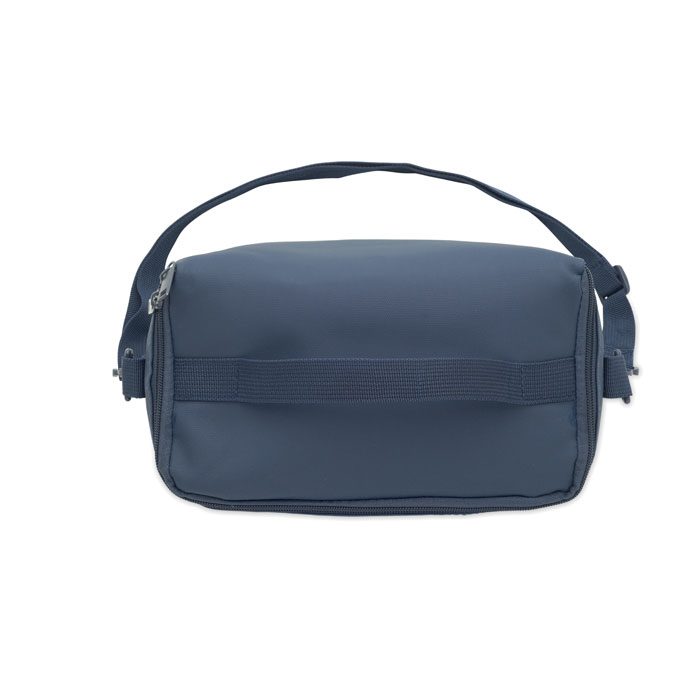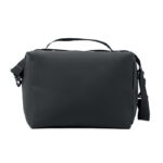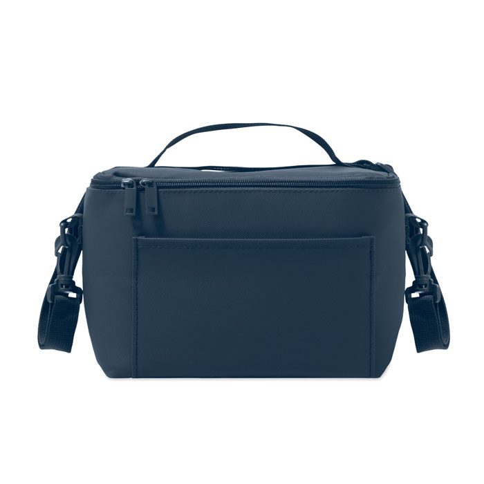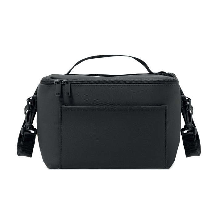Cooler bag in PU with 100g RPET polyester lining. Including 1 front pocket, handle and shoulder strap. Isolation PE foam with PEVA lining. Capacity 5.5l.