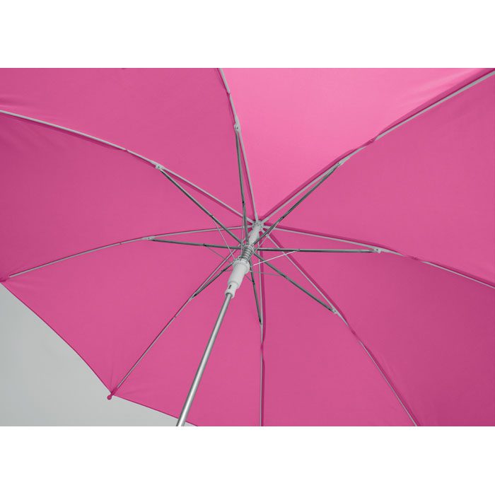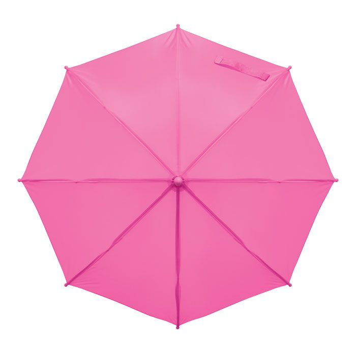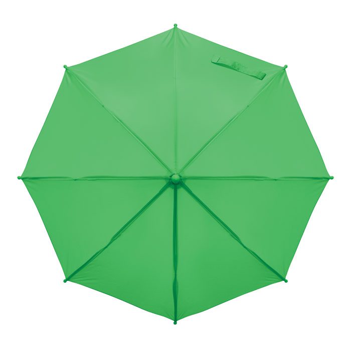 18 inch kids auto open umbrella. Metal shaft and ribs, 190T polyester. Handle, tips and top in PP.