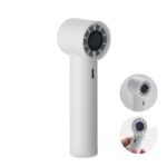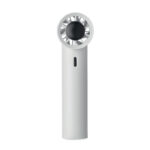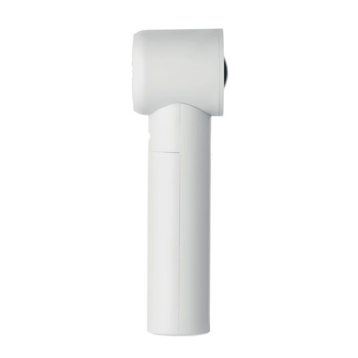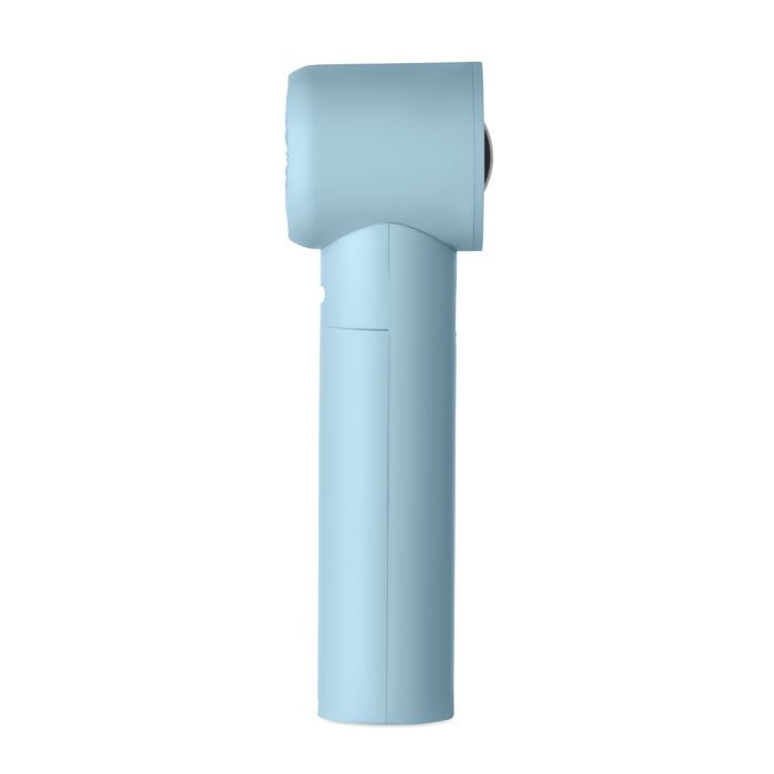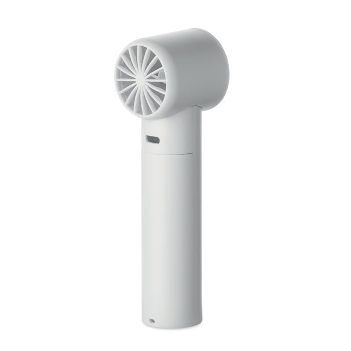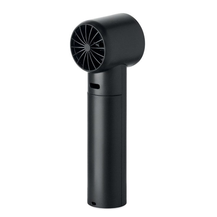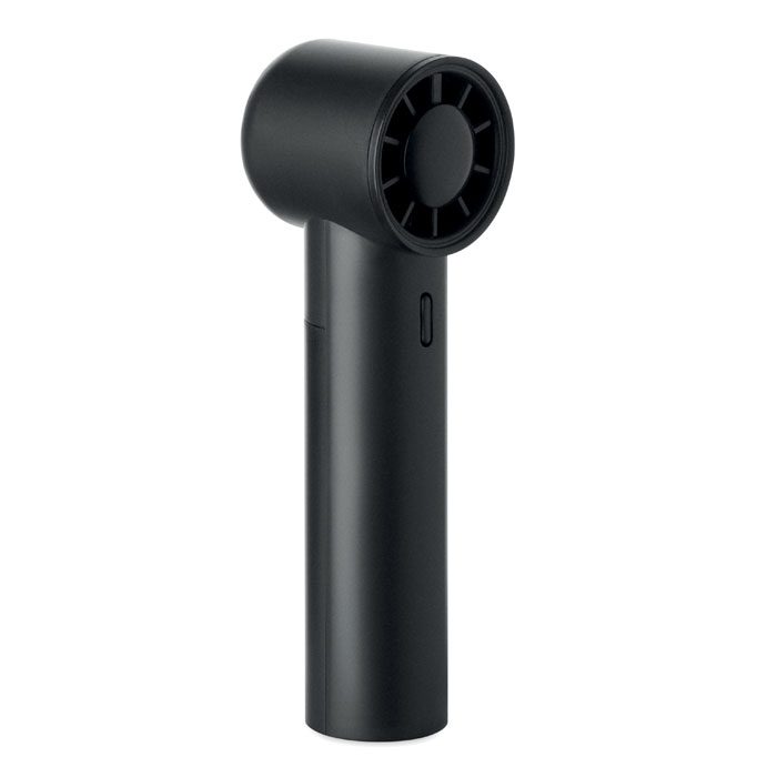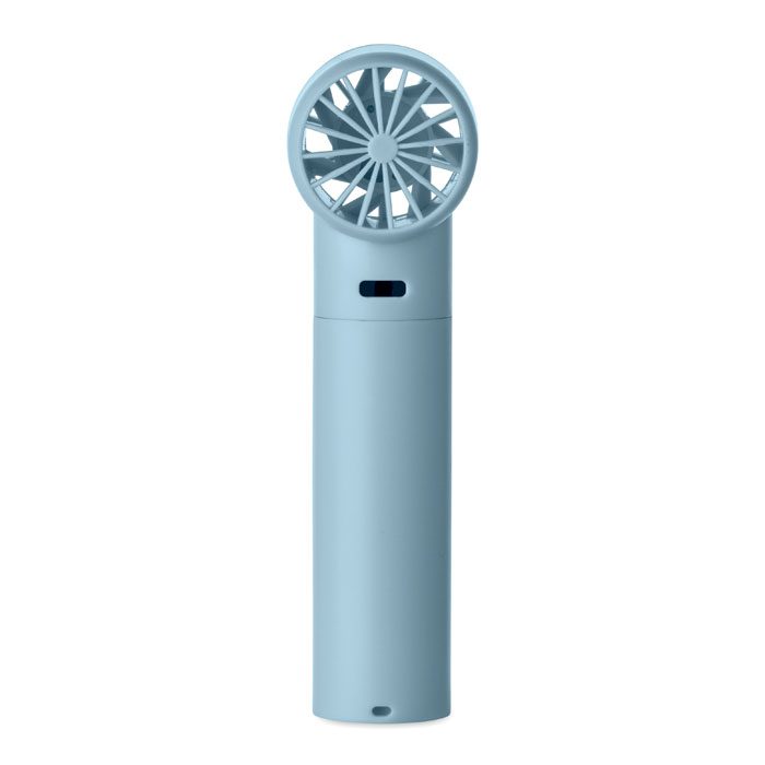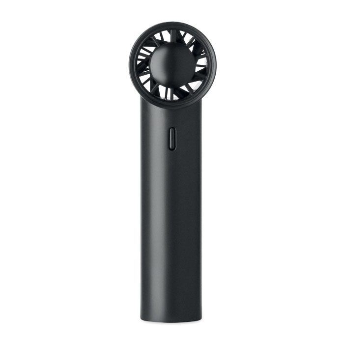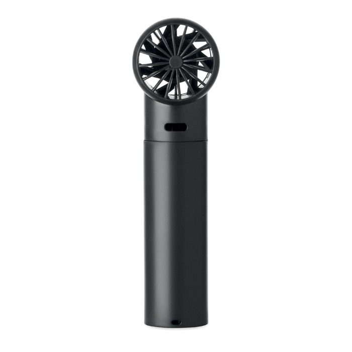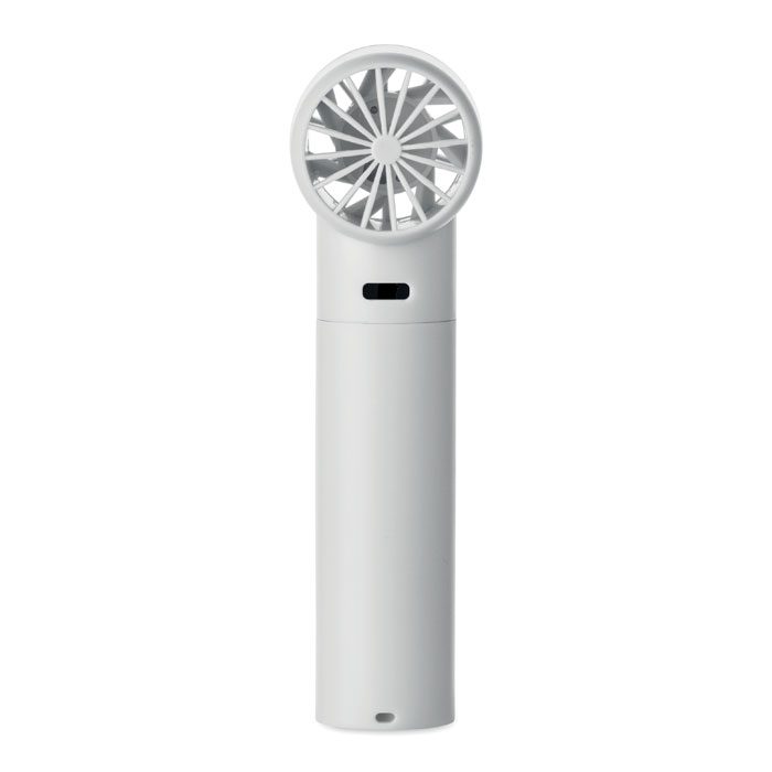 Mini handheld fan in ABS with screen display and 5 speed settings. Includes replaceable 2600mAh rechargeable lithium battery.
