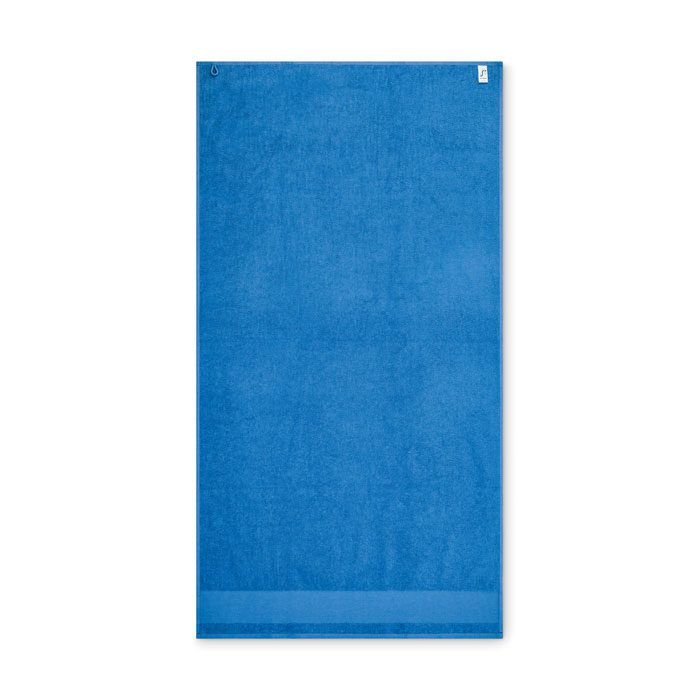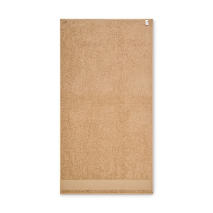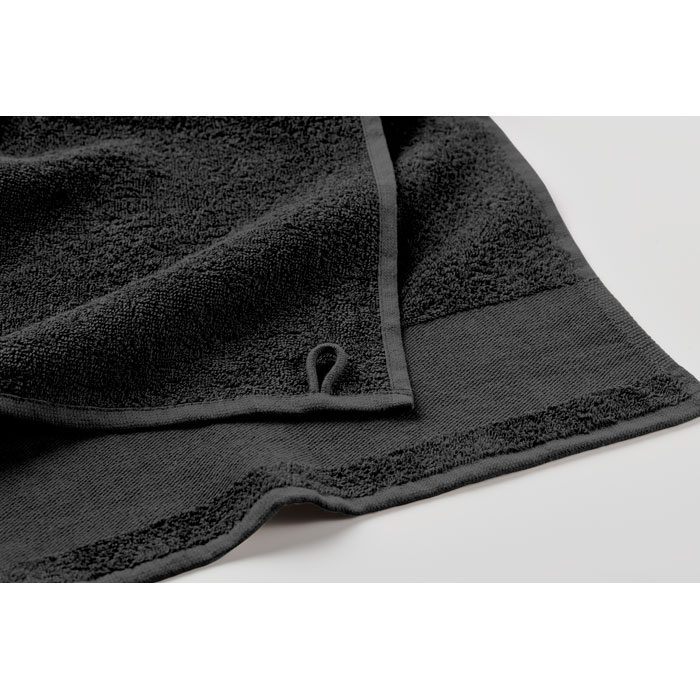 Bath towel made of 100% cotton, 380 gr/m² fabric with cotton hanger loop. Soft and absorbent design. Size 70 cm x 140 cm.