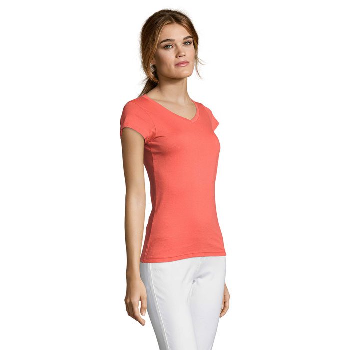 SOL’S MOON; WOMEN’S V-NECK T-SHIRT; 100% semi-combed Ringspun cotton Jersey 150; Reinforcing tape on neck; Short sleeves; Fitted cut; V-neck with rib edges; Cut and sewn.About sizes matching, please refer to the size chart in the product documentation section.