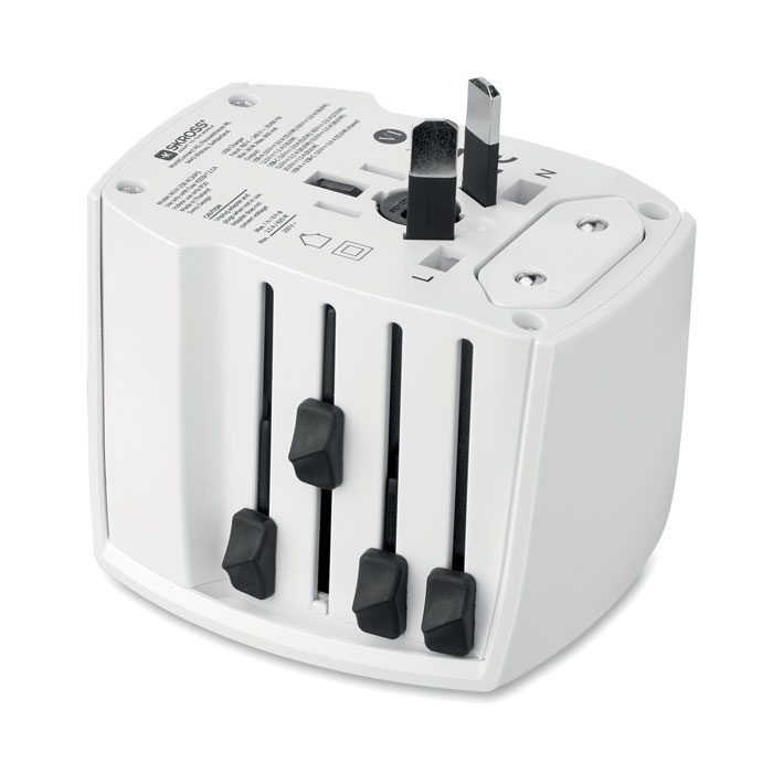 SKROSS® MUV USB — universal 2-pole travel adapter with USB-A and Type-C ports. Delivers 30W via Type-C and 18W via USB-A for fast, safe charging worldwide. Compact, powerful, and travel-ready.