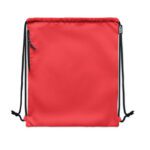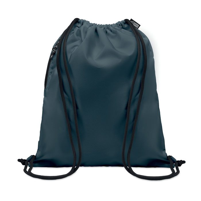 Large drawstring bag in 300D RPET polyester with side zippered outer pocket.