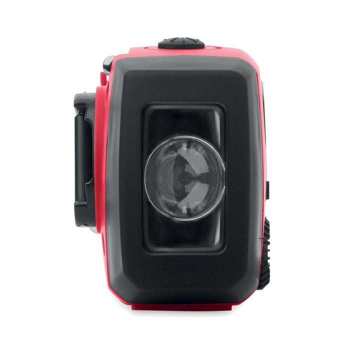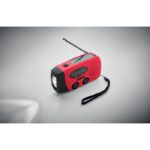 Portable AM/FM radio in ABS with LED Torch (2 settings) and a 1200mAh Power bank for emergency charging. Self powered by solar and hand crank.