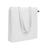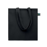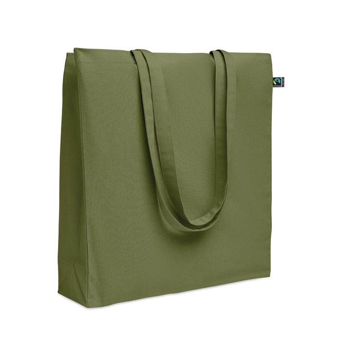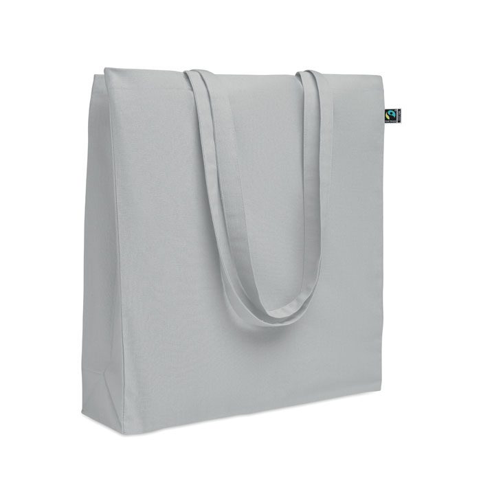 Shopping bag with long handles and gusset made of Fairtrade cotton. 180 gr/m².
