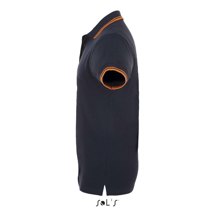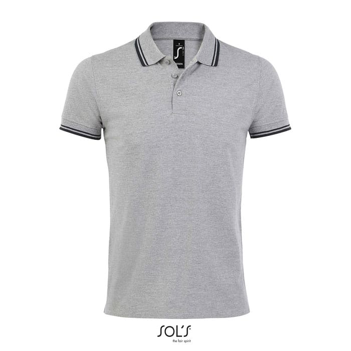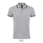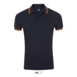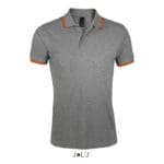 SOL’S PASADENA MEN,Men’s Polo Shirt, 100% Ringspun cotton PIQUÉ 200, Rib 1×1 collar and cuffs, Reinforcing tape on neck, Short sleeves, Contrasting stripes on collar and cuffs, Tone on tone 3 button placket, Fitted cut, Cut and sewn, Side slits, Spare button on the inside seam, (1) Grey / Navy : 85 % cotton / 15 % viscose, (2) Grey melange / Orange : 85 % cotton / 15 % viscose. About sizes matching, please refer to the size chart in the product documentation section.