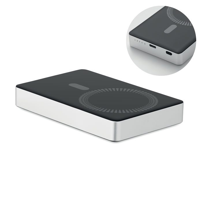 10000mAh power bank in recycled aluminium with indicator light. Features 15W magnetic wireless charging and 20W PD wired charging for fast and efficient power delivery.