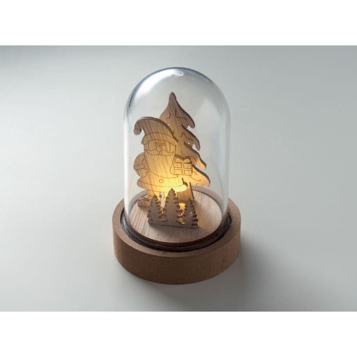 Christmas ornament in MDF and PET case with 1 LED light. Includes 3 cell batteries.