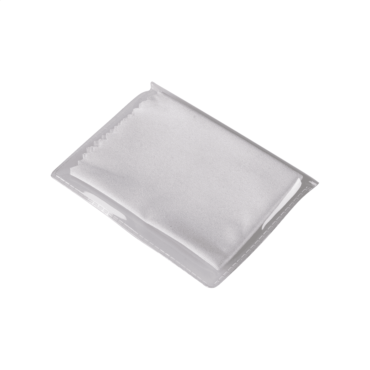 Microfibre, 230 g/m², cleaning cloth for glasses, in PVC case. Size of the cloth: 150×150 mm.