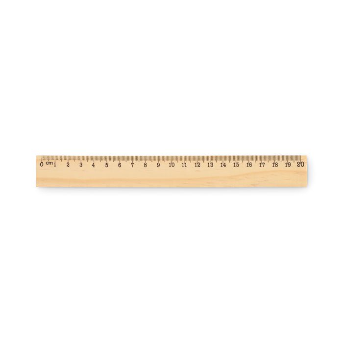 Pine wood ruler 20cm with centimetre scale on one side and inch scale on the other.