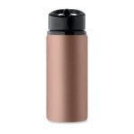 Recycled stainless steel (90% recycled stainless steel and 10% stainless steel) single wall bottle with foldable mouth piece, straw and lid with carrying handle. Capacity: 500 ml.