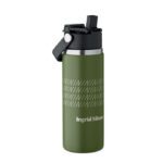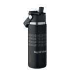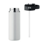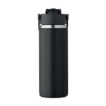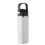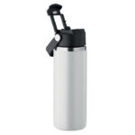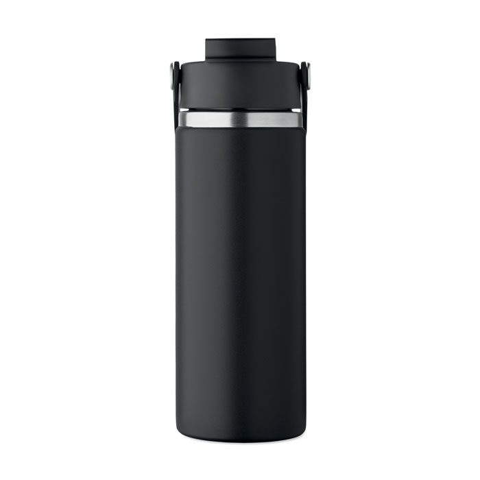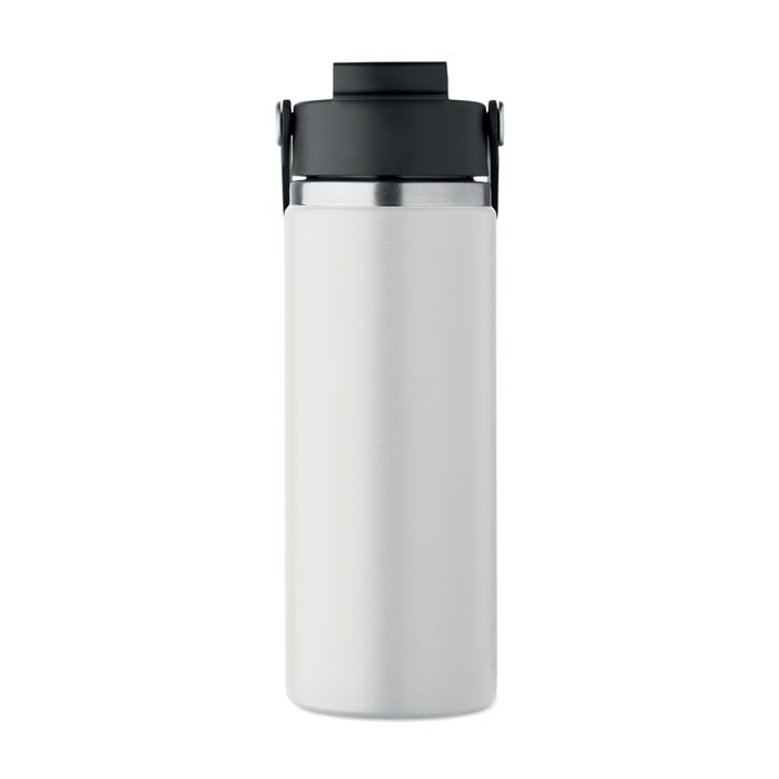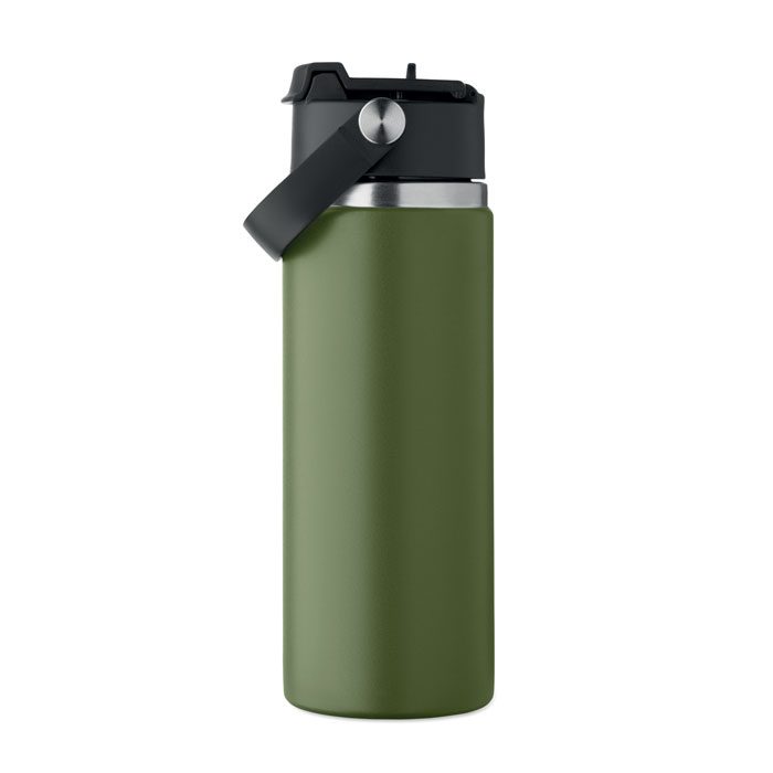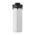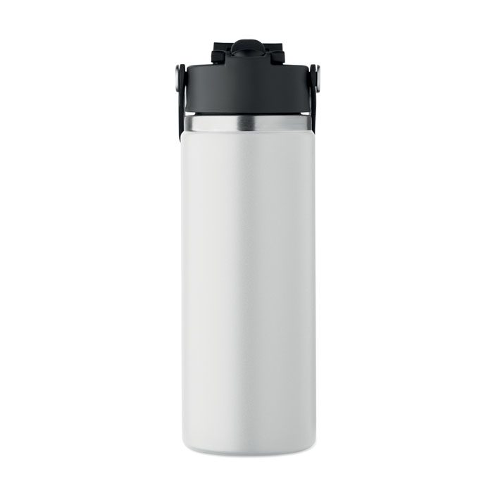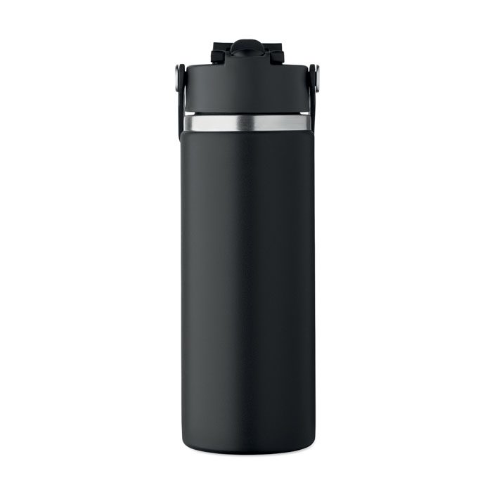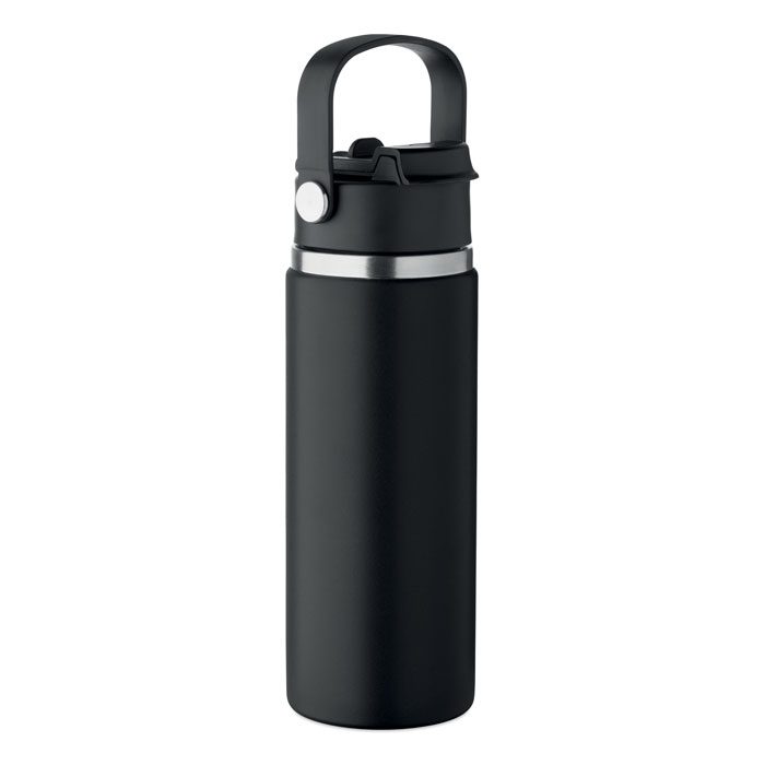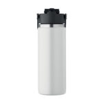 Double wall insulated bottle in recycled stainless steel (90% recycled stainless and 10% stainless steel) with combination straw and sip lid with handle. Leak free. Capacity : 500 ml.
