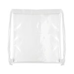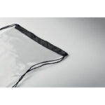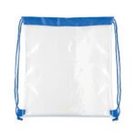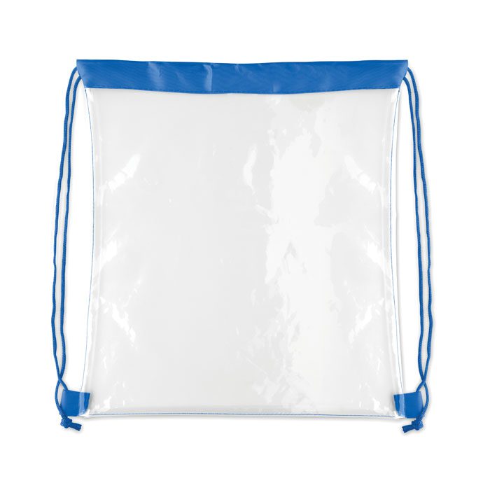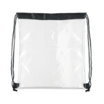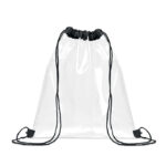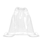Transparent drawstring bag in EVA and PVC. Polyester cords.